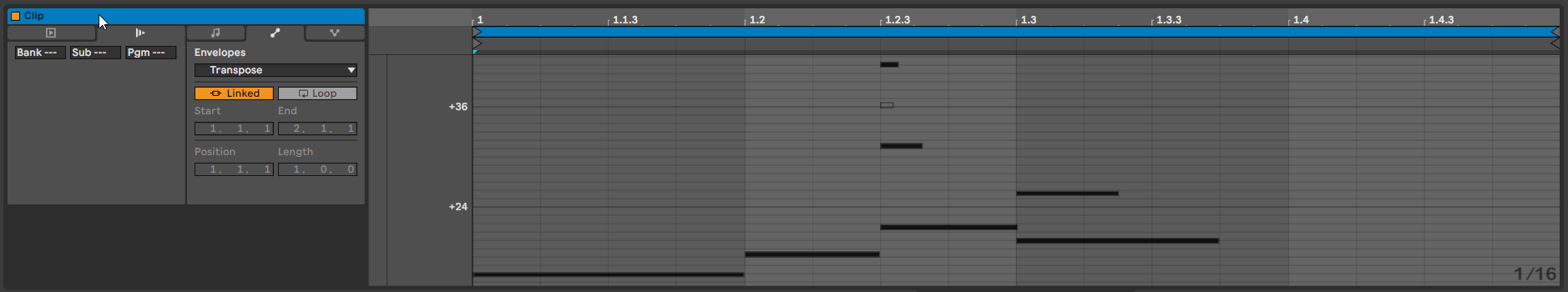Same MIDI clip, Arrangement view (automation hello again)⌗