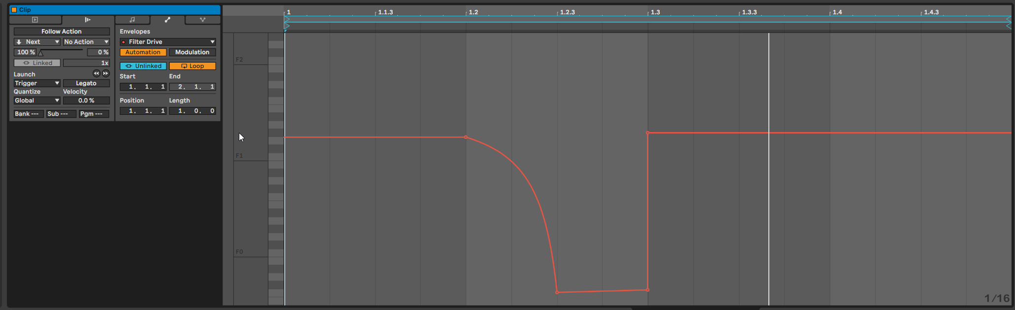 Ah! I think the penny just dropped. After re-reading and experimenting I think I’ve figured it out. You an actually store automation data in the clip, and that automation data can be looped but you have to unlink it from the region. That makes so much more sense. Actually, if I’m correct, it’s cleared up all my main issues with Ableton. But, let’s see if that is the case. Anyway, here’s a moron’s guide to looping automation envelopes: